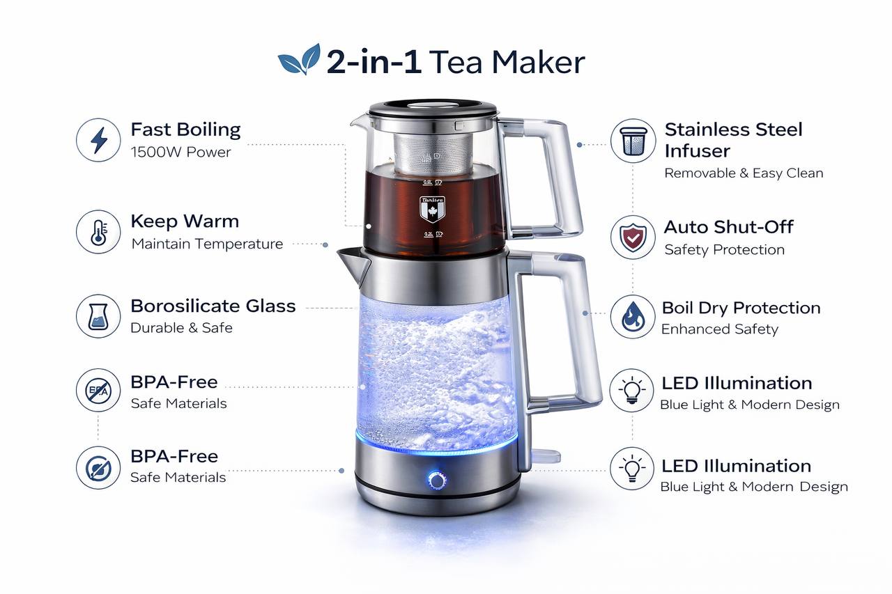Bariton Glass Tea Maker – Model BTM-1882GS